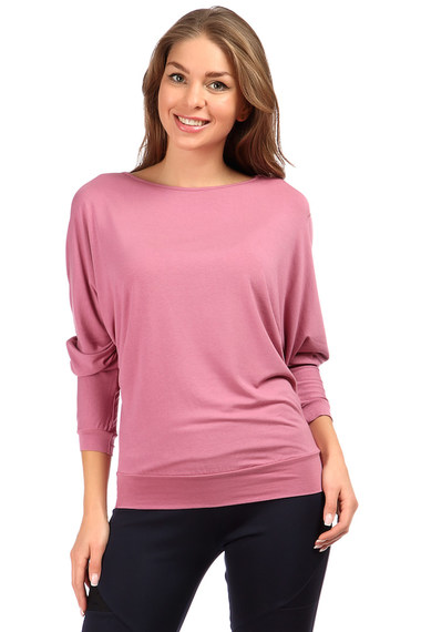 Блузка из вискозы цвета пепельной розы, модель с длинными рукавами "летучая мышь" и вырезом лодочкой.