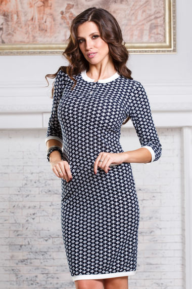 Практичное теплое, и в то же время романтичное темно-синее платье с белым принтом и кармашками замечательно подойдет как для похода в театр, так и для вечерних посиделок с друзьями! Модель выполнена из трикотажа Джерси, украшено по горловине двумя перламутровыми пуговицами.